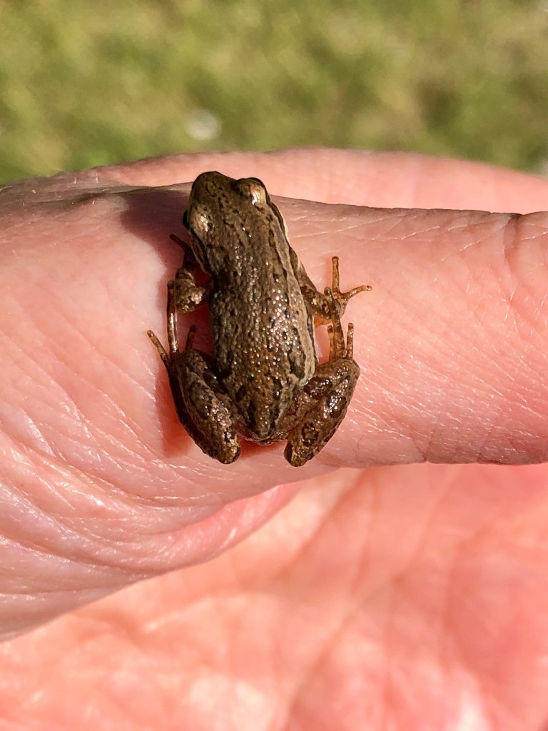 These teeny-tiny chorus frogs can be found hoping through the grass all over the yard and hanging out in the garden April through September, weather permitting.