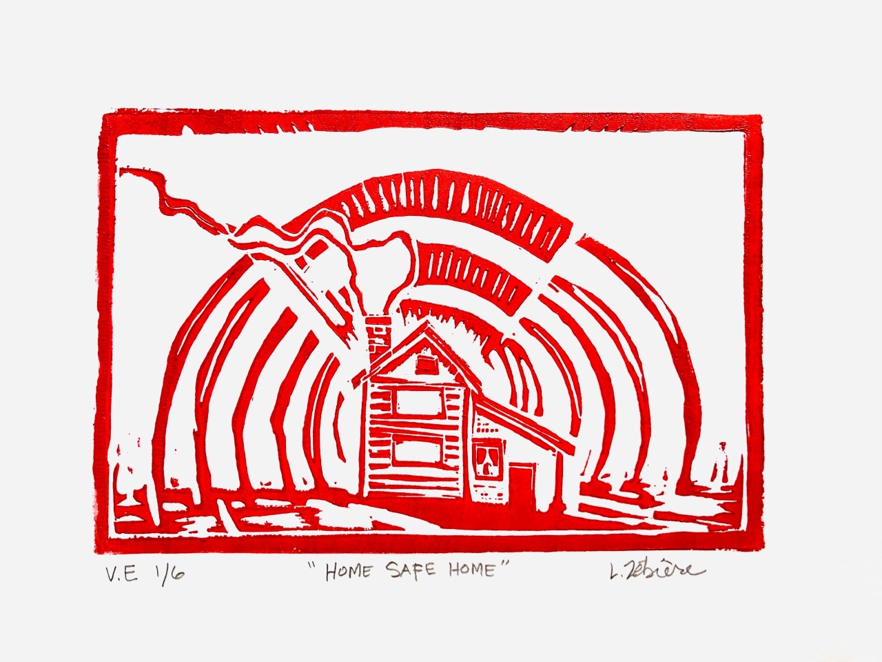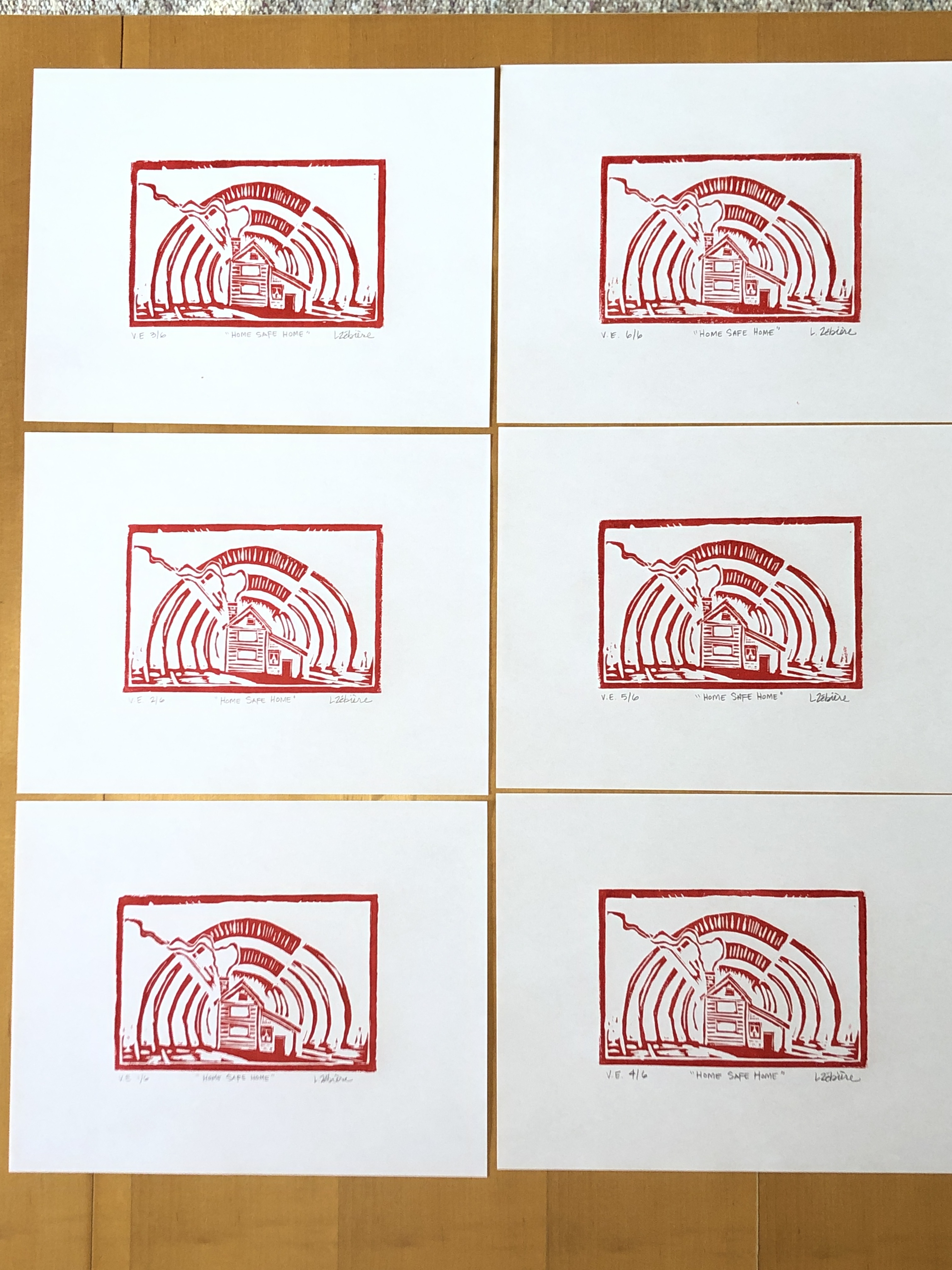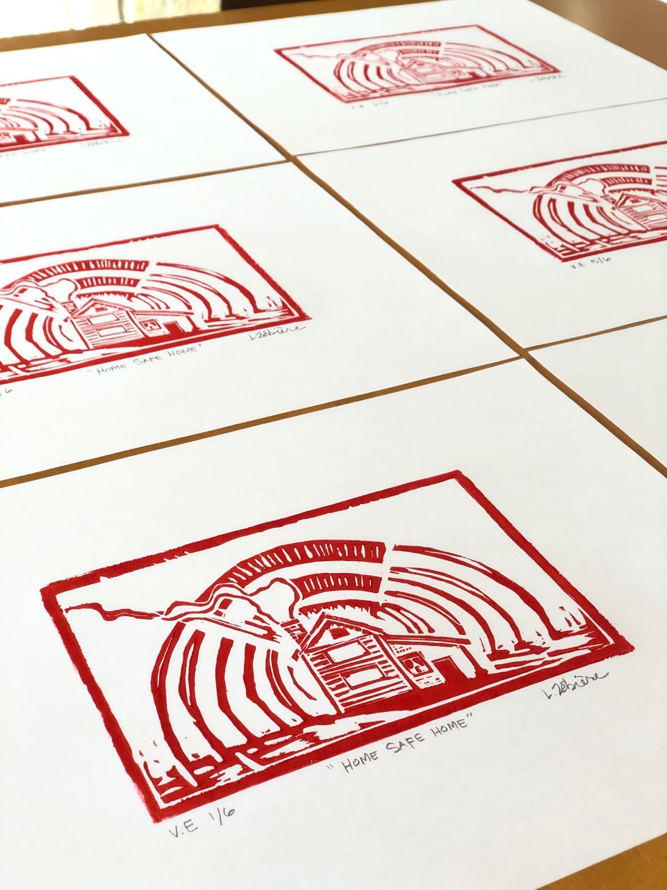 Part of the criteria for our final project was to hand in photos of 6 identical prints. The goal being to make them so consistent in quality that you can’t tell them apart. They were also to be numbered, titled and signed correctly. I chose to do my final prints in a red ink to add another layer of meaning, to represent the ‘Code Red’ emergency lockdown orders.