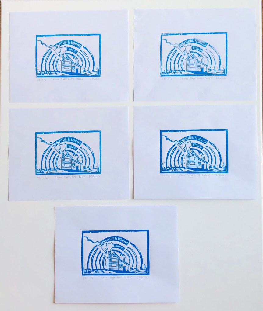 Her assignments were fun and challenging, but do-able at home and we were provided with video tutorials on the how to’s of carving a lino plate and pulling prints at home without a press. I was so happy with Suzie’s instruction that I was inspired to continue creating more linocut prints at home even after the course had ended and fully intend on carrying on with more into the future. I do enjoy printmaking very much.