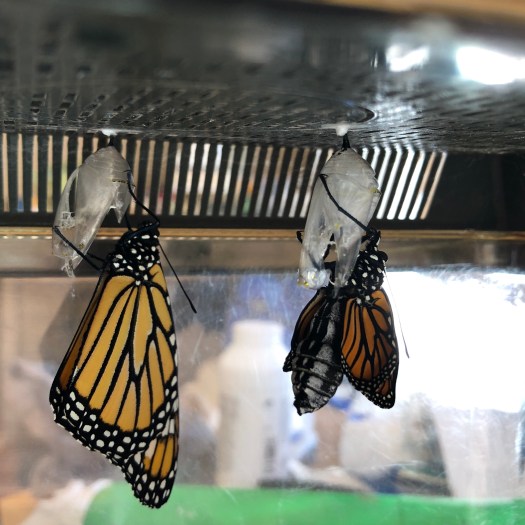 For the last few years I have been actively participating as something of a ‘citizen scientist’ doing monarch caterpillar rescue. Yes, rescue. I collect monarch caterpillars and eggs from the common milkweed plants found growing along the mile-road shoulders in the direct path of the municipal mower blades and herbicide spray. The ditch ‘maintenance’ is typically done twice a season, and often at the time of greatest impact on the monarchs. The mowing and herbicide spraying results in killing off the growing portion of the plant (not the runner root system) and leaves any surviving caterpillars to starve. So, I scour the ditches– preferably before these actions are taken–bringing them home to raise them throughout the summer and then I release them back where I found them, or into my garden which is still in their same overall geographic area.